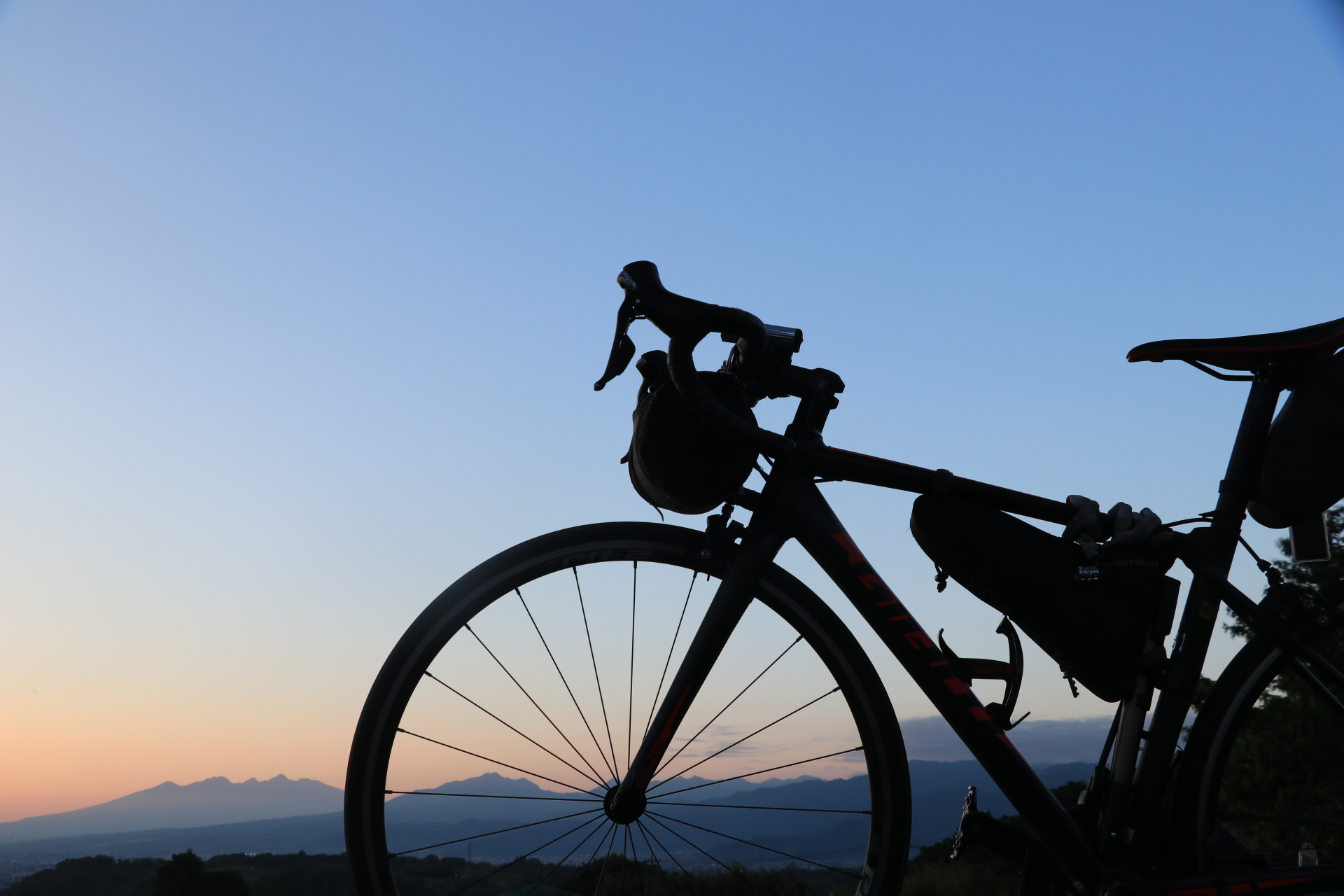 見通しの良い直線道路。右奥遠くに浮かぶ八ヶ岳と、その手前には茅ヶ岳だろうか。予想もしていなかった絶景に、心を奪われて見とれていた。