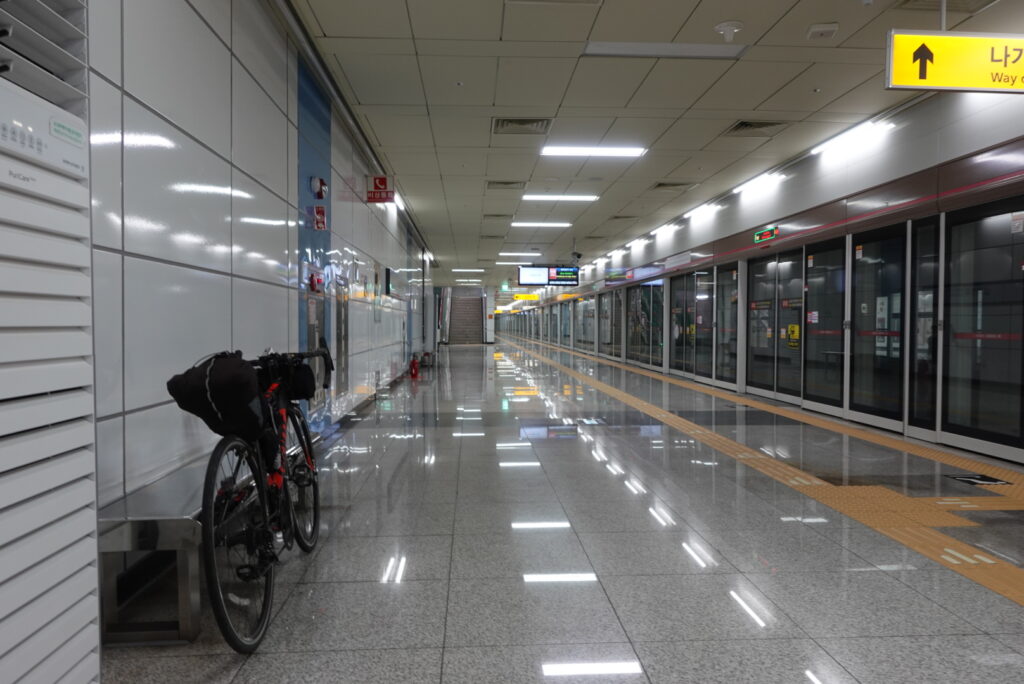 ソウルや大邱、釜山などでは、土日には自転車をそのまま地下鉄に持ち込むことができます。空港鉄道のAREXも、持ち込みが可能です。使い分けると便利。