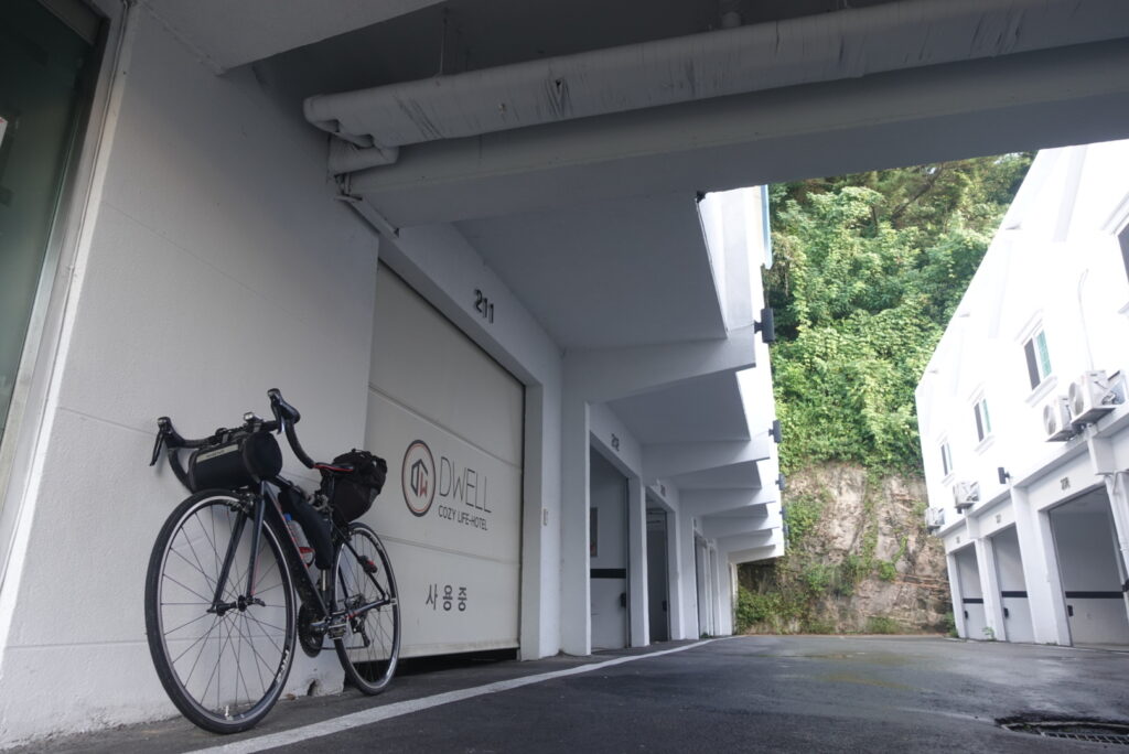 Google mapで「ホテル」を調べると、多くのモーテルが当日でも予約を取ることができます。モーテルは、ロードサイドによくあるタイプのホテルで、連れ込み宿という特性も併せ持っています。でも、韓国では出張者が泊まることもあるようで、日本とは毛色が違うみたいですね。モーテルはおしゃれなホテルではありませんが、サイクリストにとってこれほど使い勝手の良い宿泊施設はありません。