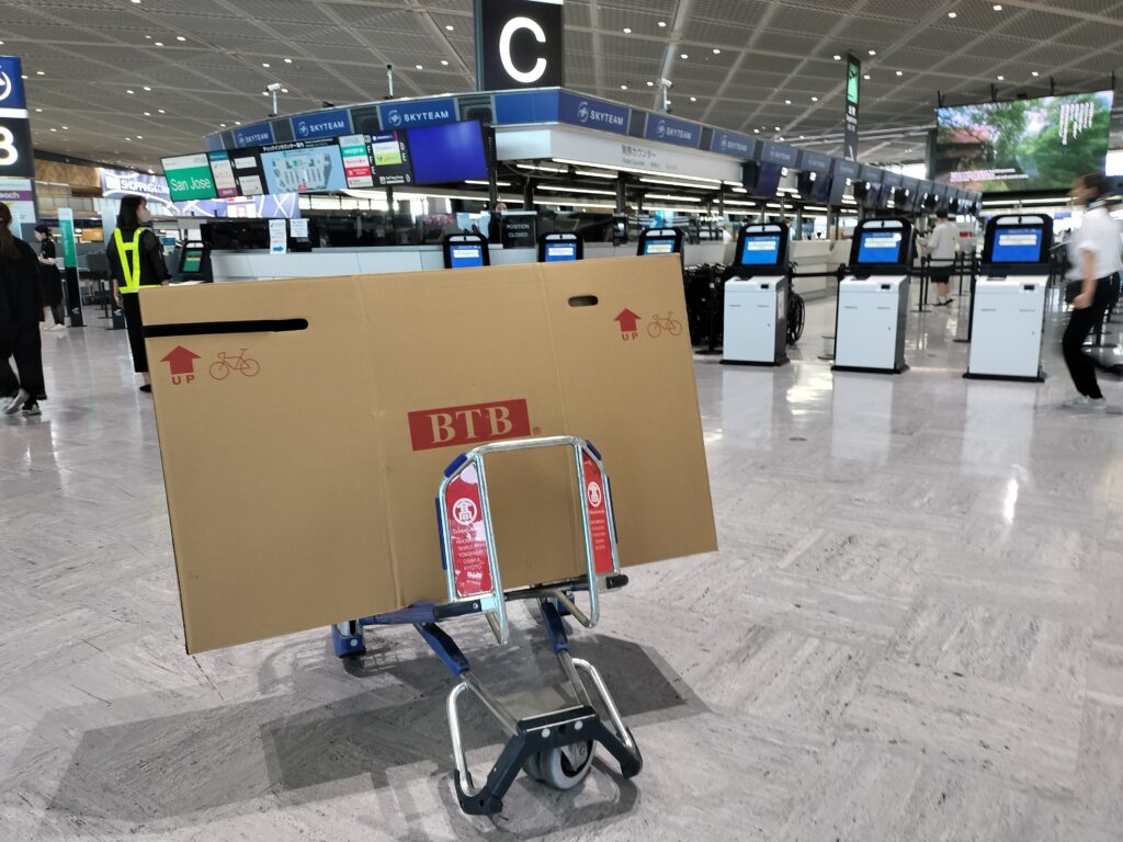 始めての国際線輪行は、なんだかんだでかなり大変でした。私は、BTB 輪行箱 Basicを買っていきました。確かに1-2往復程度の強度ではありますが、問題なく往復とも輪行することができました。